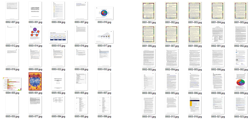 The sample needs to be balanced, so the page images were turned into dense feature vectors using the multimodal transformer Donut's penultimate layer. These feature vectors were then clustered into two clusters (determined by siluette score) using a k-means algorithm and a random 100 pages from each cluster was selected. The thumbnails of the first few pages from each cluster can be seen below: